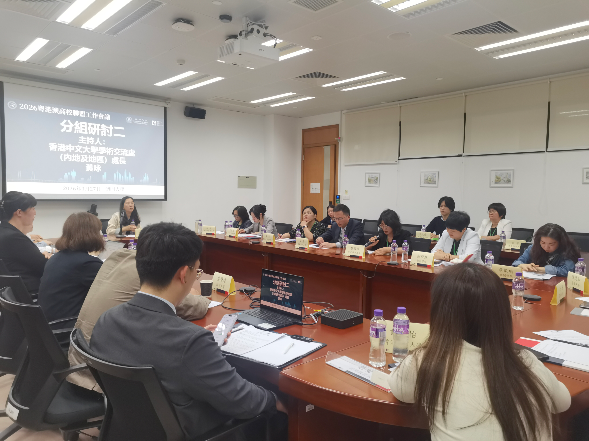 开幕式上,澳门大学副校长马许愿致欢迎辞。广东省教育厅港澳台事务办公室副主任陈琦、香港特别行政区政府教育局助理秘书长麦嘉莹、澳门特别行政区政府教育及青年发展局高等教育厅厅长许嘉璐分别发言,回顾总结了粤港澳三地高校联盟十年来的发展成果,并对联盟未来的高质量发展提出构想与期望。香港中文大学学术交流处(内地及港澳地区)处长黄咏就粤港澳高校联盟2025年工作成果及2026年工作计划作详细汇报。各成员院校代表随后分组研讨,深入交流合作契合点,共同为粤港澳高等教育的发展与合作建言献策。